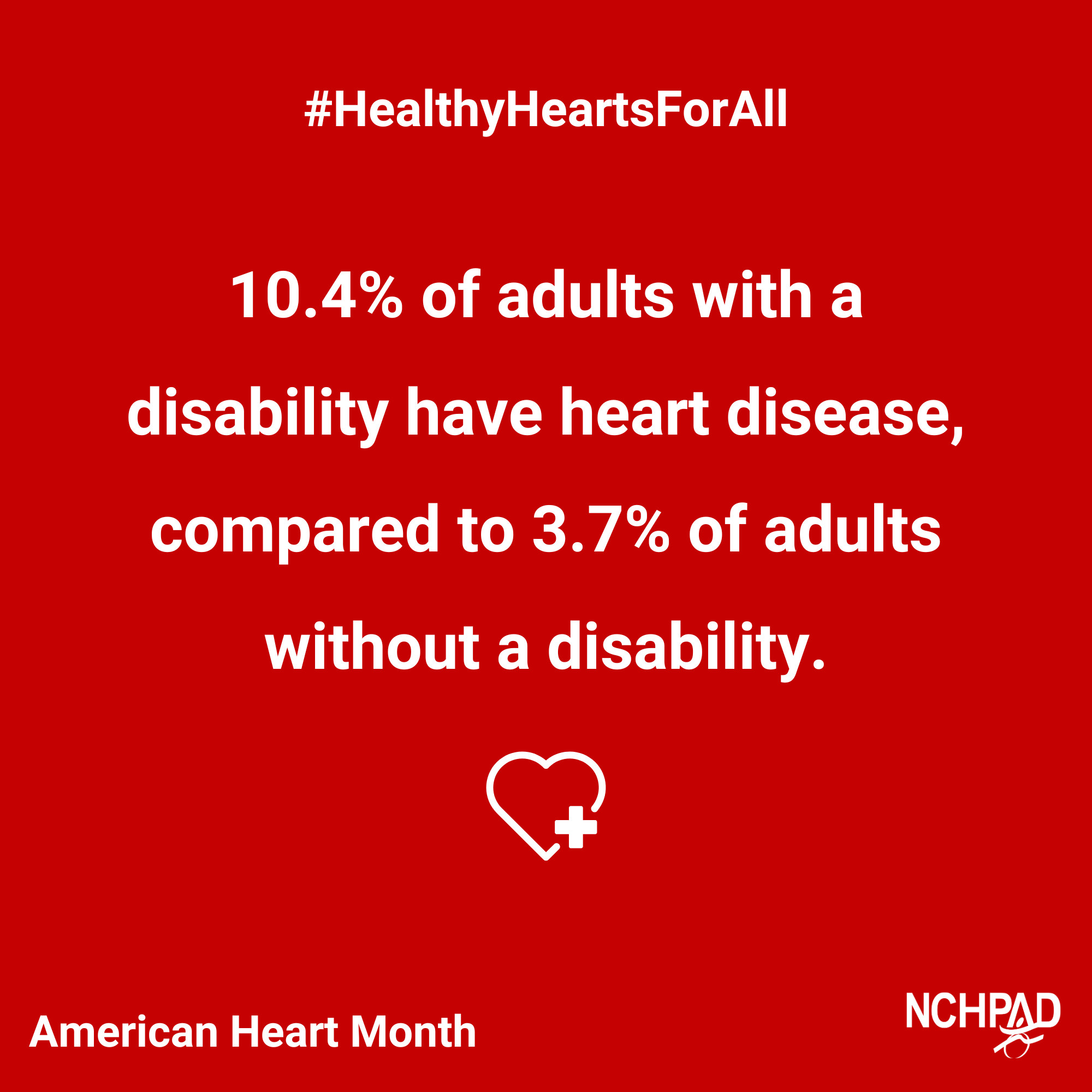 This American Heart Month, @NCHPAD highlights heart health for all! Individuals with disabilities can prioritize heart health through positive lifestyle changes and maintaining routine health screenings. Show your heart some love and better your health today! #HealthyHeartsForAll