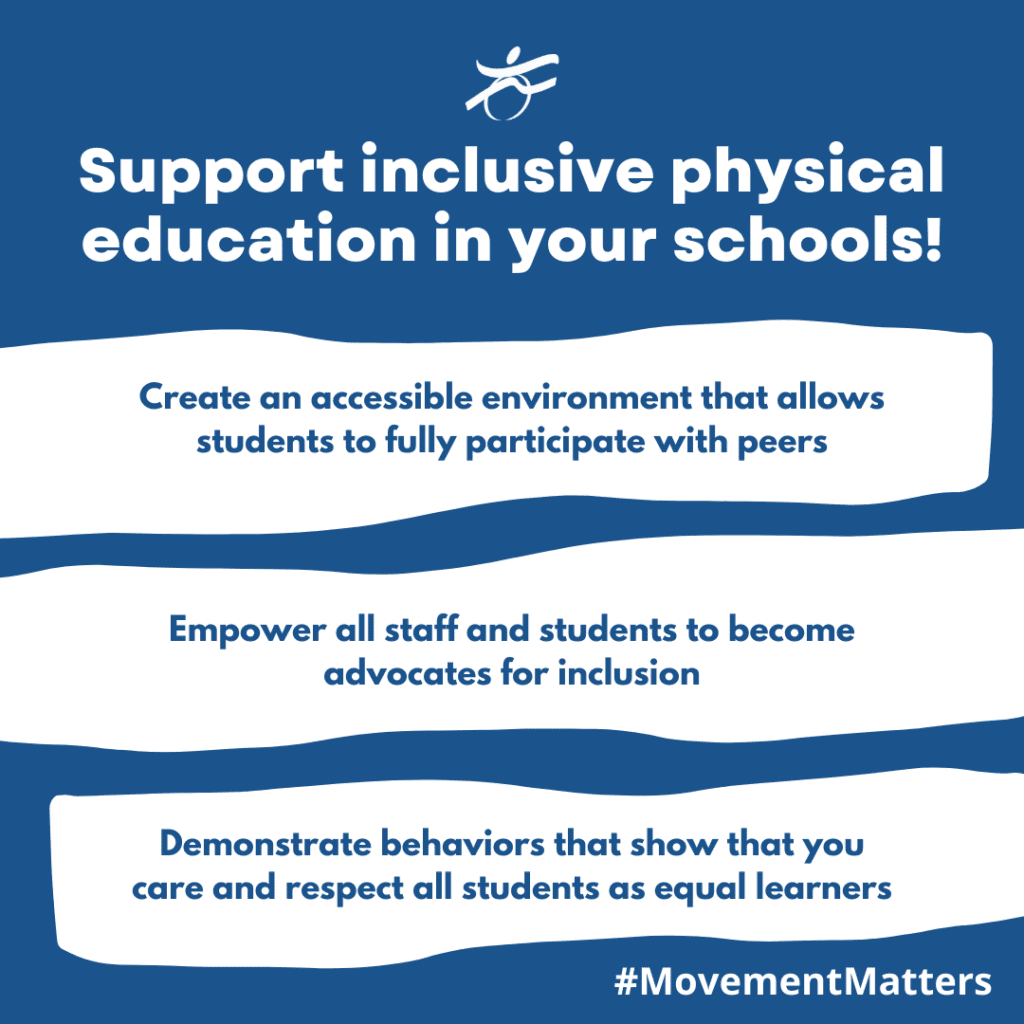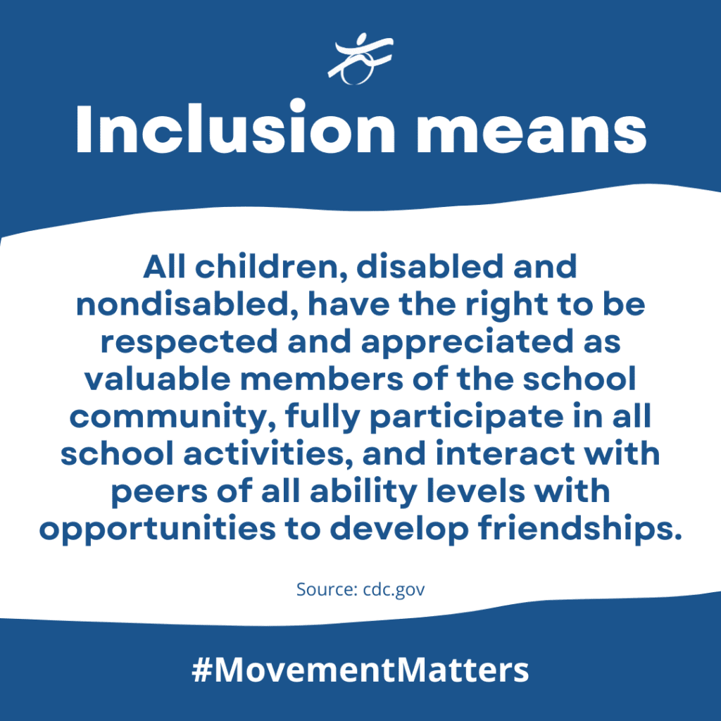 Use this small toolkit to promote inclusion in physical education classrooms and to share NCHPAD’s video How Inclusive Physical Education in School Benefits All Students, which provides tips and insights to boosting inclusion and participation in PE.